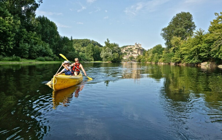 Le patrimoine unique de la région, porté par des châteaux médiévaux et des villages pittoresques en pierre (Beynac, Saint-Léon-sur-Vézère…), se dévoile le long des rives. Plusieurs entreprises locales, souvent familiales, proposent des sorties en canoë-kayak adaptées à tous les niveaux, avec des options de parcours et de durées variées, allant de 5 à 26 kilomètres, au gré des 5 rivières du coin.